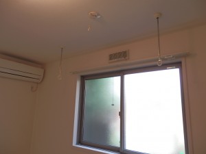 室内物干しフックが設置されているのでお部屋の中で洗濯物を乾かせます。