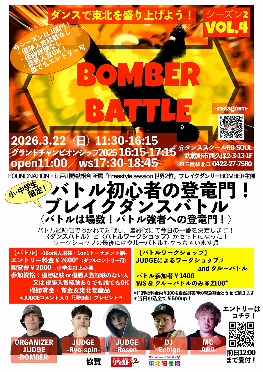 ブレイクダンスバトル「BOMBER BATTLE」に協賛しています