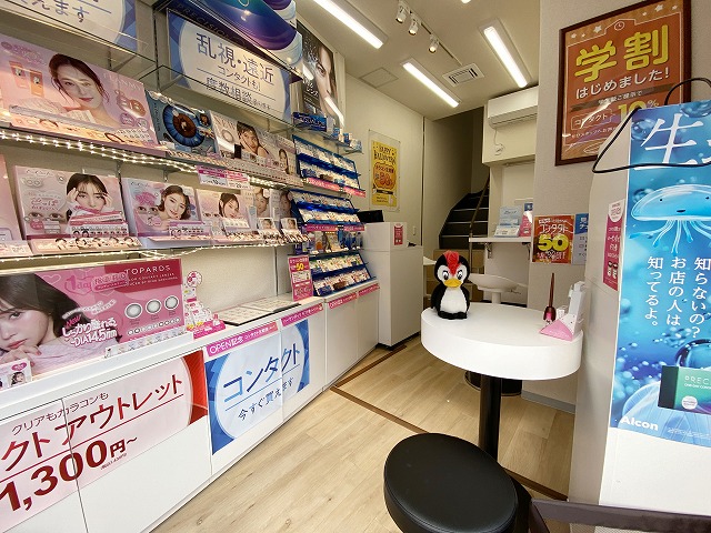 まず一つに在庫の豊富さがございます。コンタクトレンズは度数がわかればすぐお渡しができますので、ご希望の商品をお伝えください。そのままお店で販売することもできますし、サービスとして定期便というものもございますので、一番お得な方法をご案内できればと思っております。